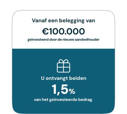 Draag een nieuwe belegger bij ons aan en zowel u als de nieuwe aandeelhouder ontvangen een interessante beloning!